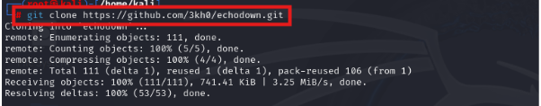 Step 1: To obtain the Echo Down tool, we need to clone it from its GitHub repository. Use the following command to download and clone the tool: