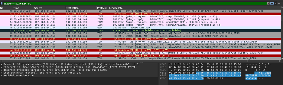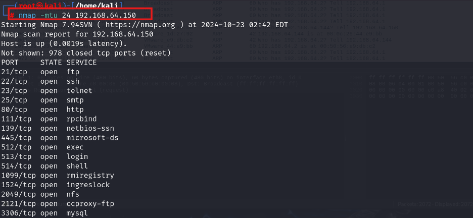 By fragmenting the packets into small pieces, Nmap is able to bypass the packet filters and firewalls that are otherwise supposed to deny packets of a bigger size. Fragmentation is done through the option `-f`.