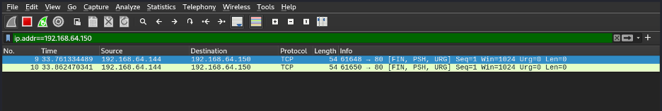 $ nmap -sN 192.168.64.150